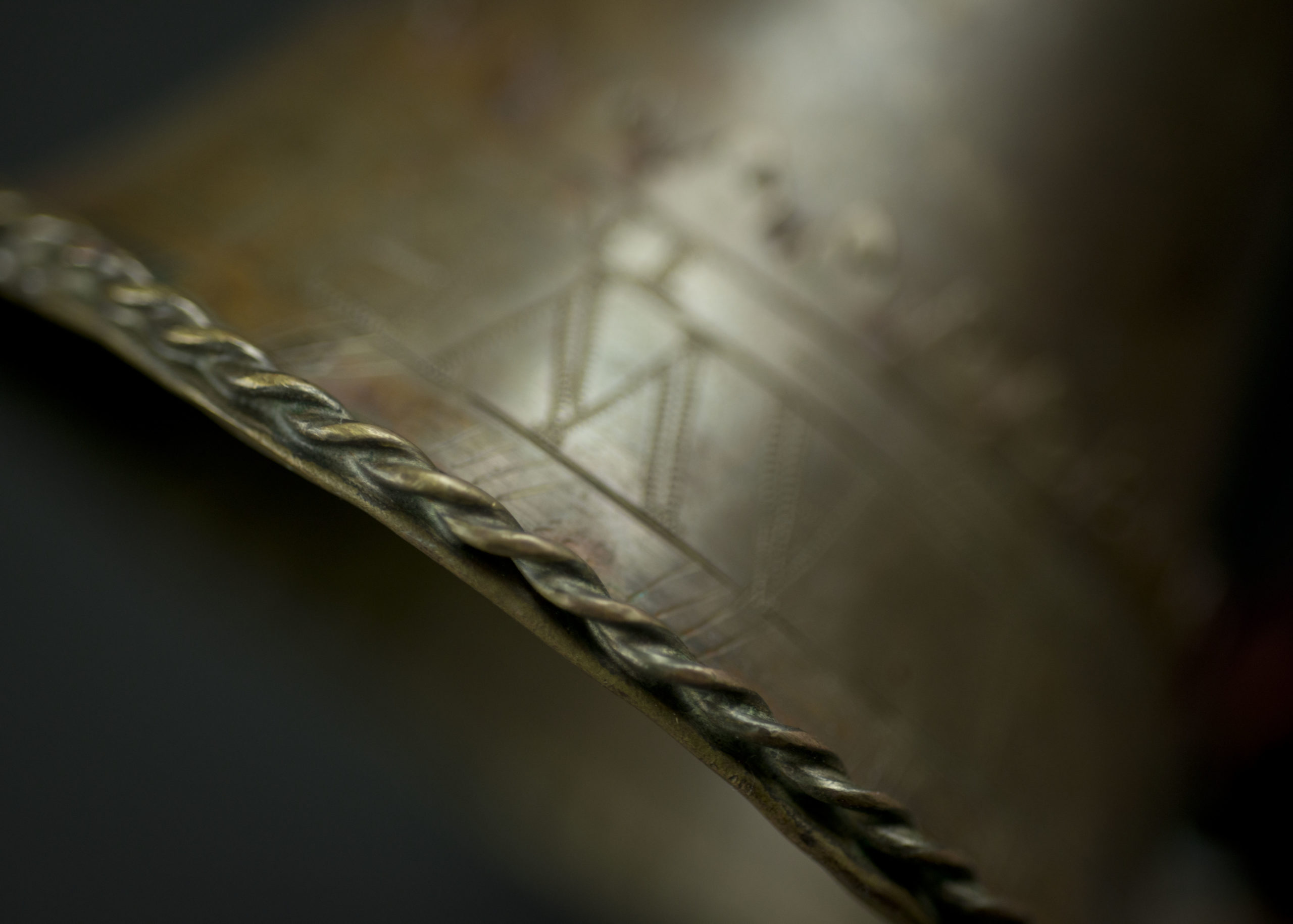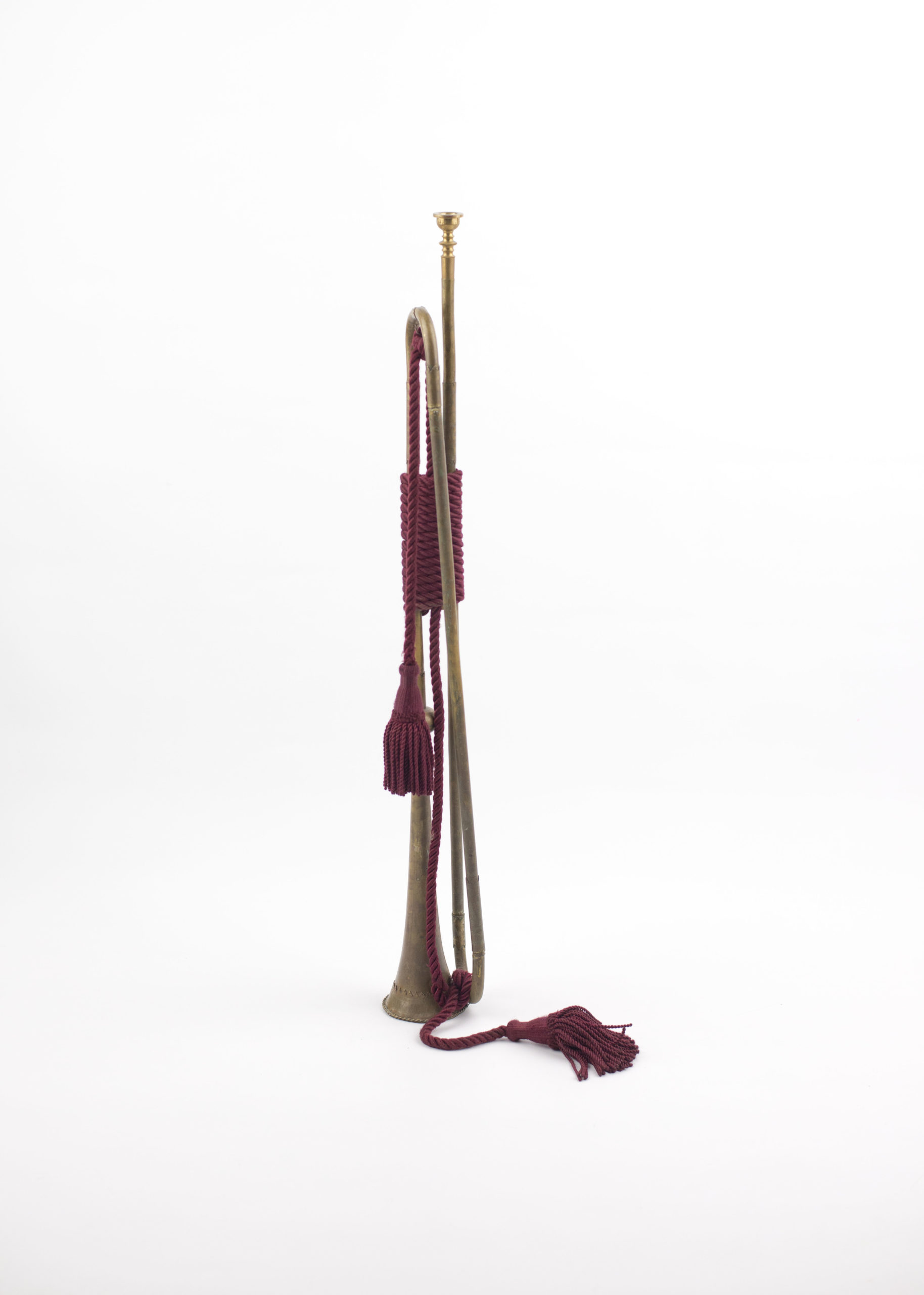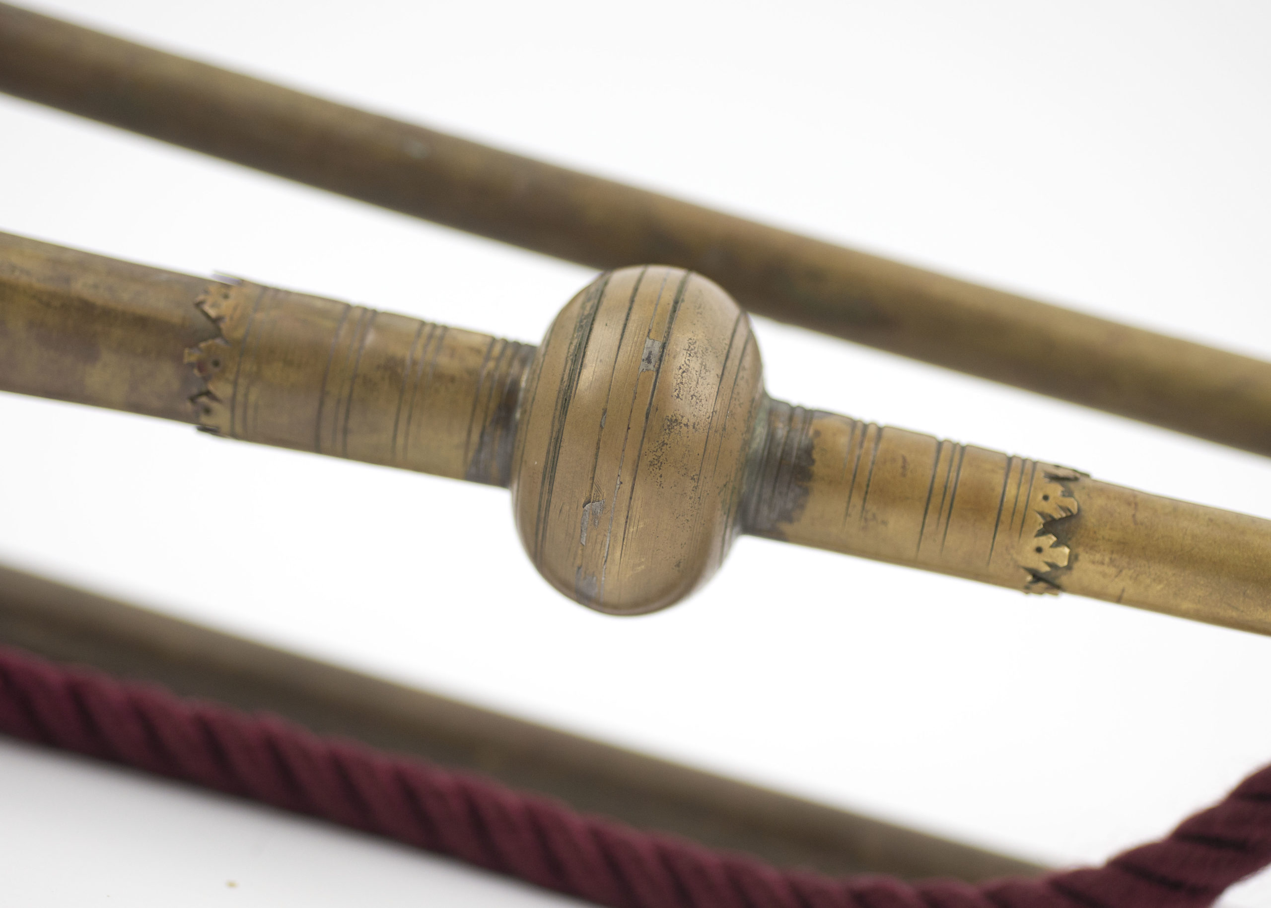 It is made entirely from tubing which is hand rolled from brass sheet. As was typical of the early brasses, the wall thickness varies from .60 mm in the body of the instrument to .28 mm at the bell rim. The bore diameter is 10.7 mm with a bell opening of 10.66 cm. As in the original, the sections are hand fitted without solder. The use of original methods of construction produces and instrument with virtually the same sound and response as the 18th century trumpets.